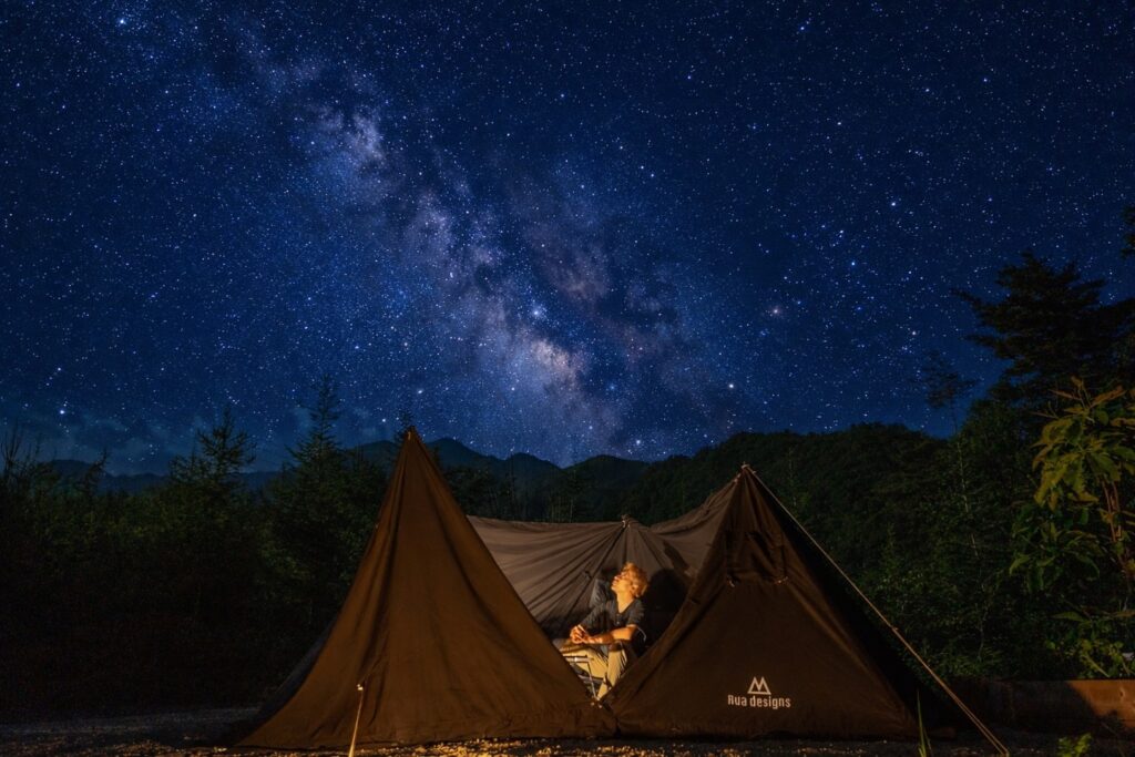 鳥のさえずりが耳に届き、木々のざわめきが風とともに語りかけてくる。焚き火の香りが漂い、夜空には無数の星が瞬く。自然の懐に抱かれ、全身で山の息吹を感じるこの場所で、日常では味わえない、心の奥まで響く感動を体験してください。